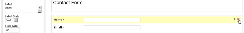 4. Veti fi dusi in pagina ce creare a formularului. Prestabilit, aveti deja 3 campuri adaugate: Name, Email si Message. Pentru a edita un camp trebuie sa dati clic pe el pentru a-l selecta. In partea stanga puteti edita numele campului, lungimea casutei pentru text si il puteti face obligatoriu bifand casuta "Required".